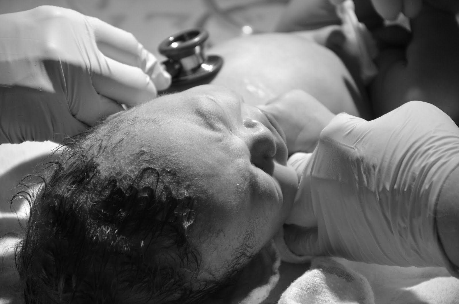 Despite my quick progress at the end, and a huge amount of pressure and urge to push that I continued to feel up until the baby was delivered, I still had to push for about fifteen minutes. The baby was stuck under my pelvic bone and was having a hard time getting past that point. It took all my strength to push through each contraction, and although the goal was to get two big pushes per contraction, the nurse kept urging me to get one more push in at the end of each contraction because he was so close. Finally after a rather large episiotomy, the baby emerged at 7:43pm with the umbilical cord wrapped around his neck twice. The doctor unwrapped the cord from around his neck and the baby took his first breath, quickly followed by a loud wail. This moment, although short, was so spiritual and emotional and sacred as I almost physically felt the presence of his spirit in the room as it entered this tiny human being.