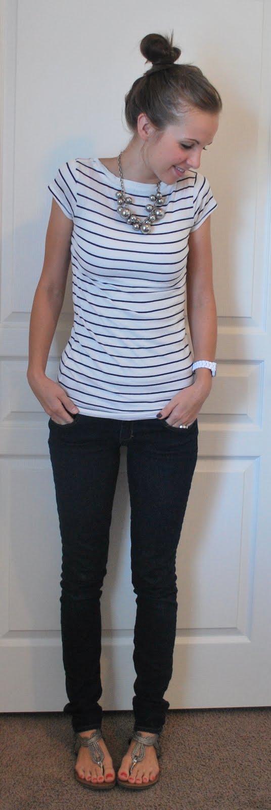 [striped tee: target, jeans: abercrombie (altered by me), necklace: gifted (francesca’s), sandals: target]