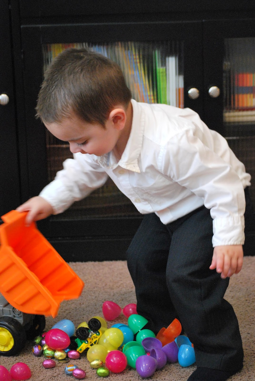 After we got home from church on Sunday, and Peanut had a nap, we did a little easter egg hunt. He was thrilled to find candy inside the eggs!
