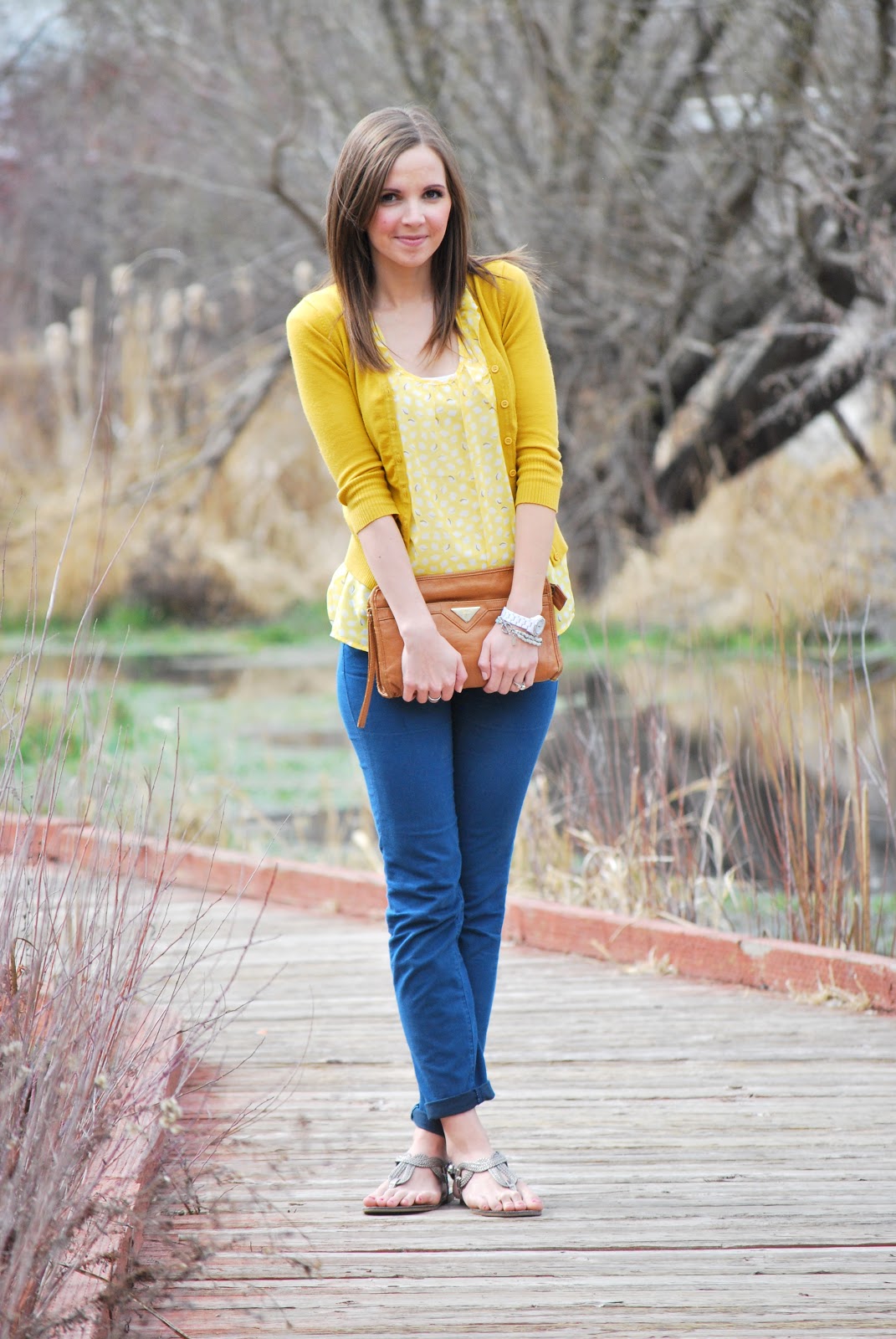 I swoon over that yellow cardigan every time I come here. It's going on my must-have list! It looks really great with those blue pants.