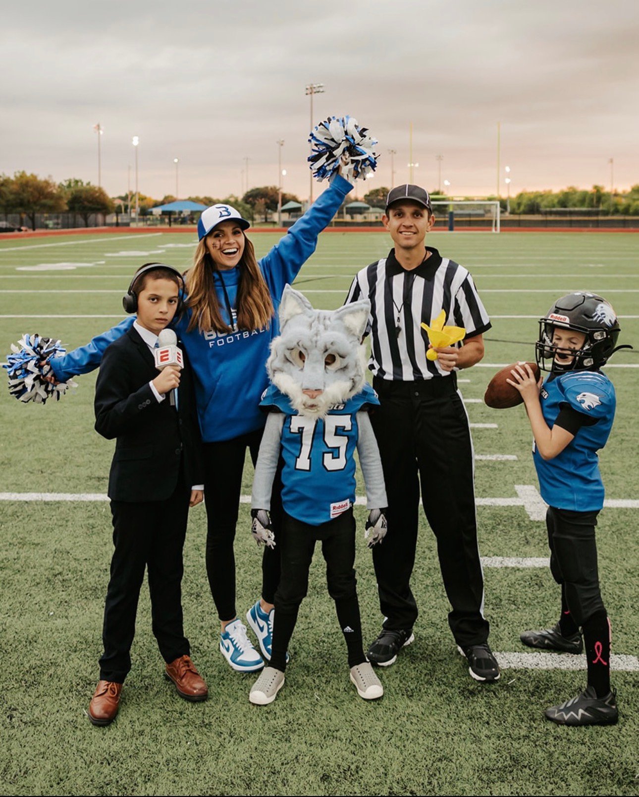 Our 2022 theme was all about football! With three boys, this one was a big hit. I built that mascot head for over a month ahead. Definitely a great choice if you want a no-stress (minus the mascot mask!) family costume that still feels coordinated.