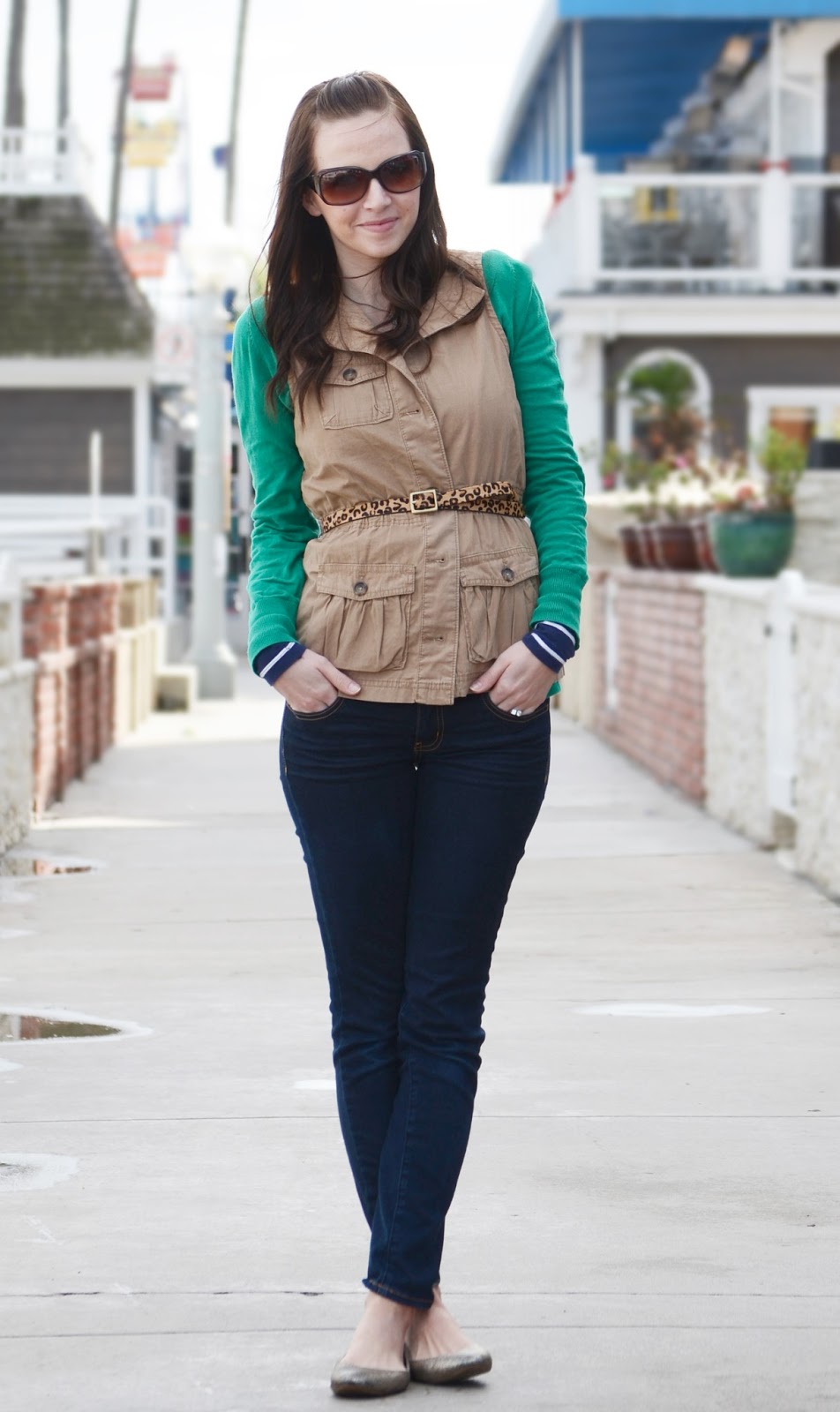 vest, cardigan, sunglasses: old navy // striped t: h&m // belt: target // flats: payless // necklace: forever 21