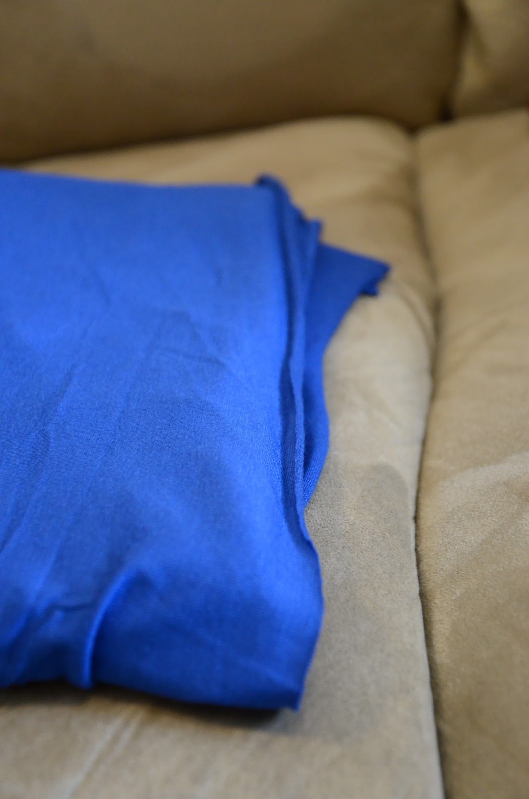 This is another fantastic fabric (because of the rayon), with a gorgeous drape and super soft. The difference between this one and the navy polka dot fabric is the exclusion of Polyester. The feel and drape are very similar between the two fabrics, but this royal blue fabric is slightly lighter weight.