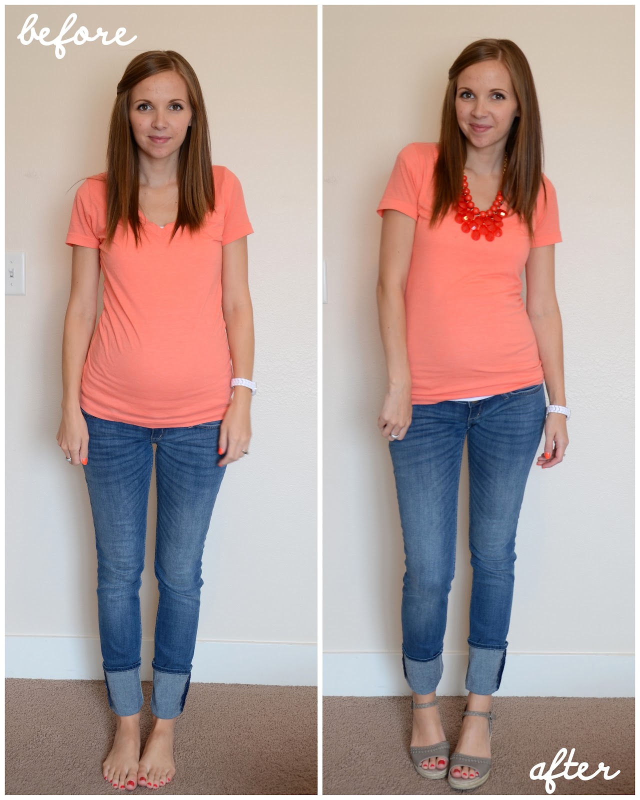 I love the red necklace! It's something I would have never picked out either. You've made me a believer. By the way, you are so freakin' adorable prego.