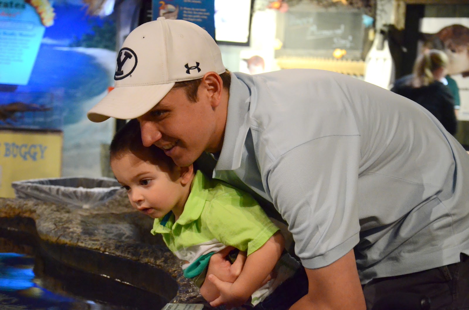We spent the morning at the Living Planet Aquarium in Salt Lake, where Peanut found Nemo, Philip touched a stingray, and I freaked out about a large shark and the glow in the dark scorpions. After an hour and a half there, we grabbed some lunch at Zupas (tomato basil soup and a turkey spinach-artichoke panini for me — amazing). Although Peanut wasn’t too interested in sharing our food, he was very interested in biting all the chocolate off of our chocolate covered strawberries. After lunch, we browsed a few stores and tested out a few mattresses (we’re in the market), and tried to figure out how anyone ever chooses a mattress (they’re either way too soft, way too hard, or way too expensive)!