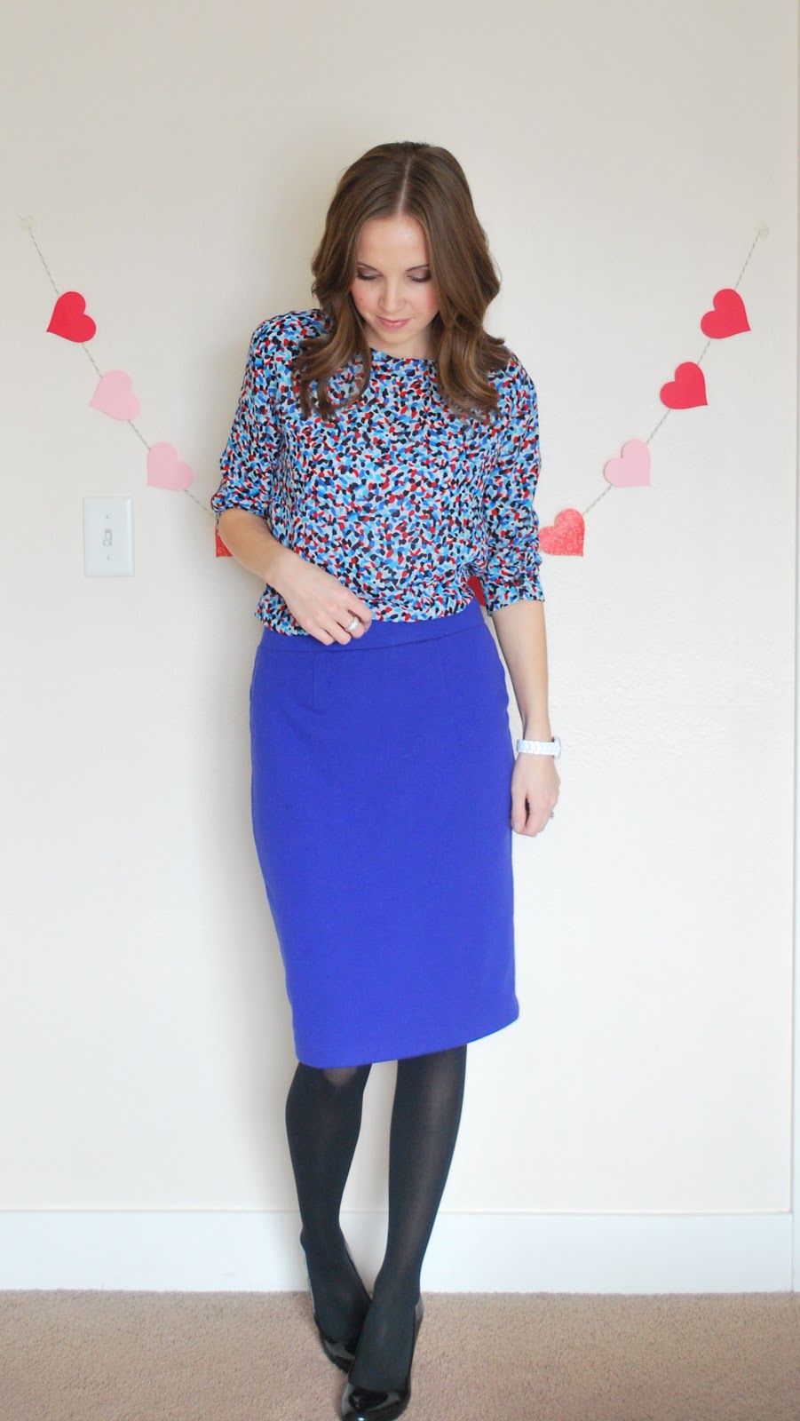 pencil skirt: target (recent, but can’t find online), tights: can’t remember, black heels: target (shop), Valentine’s banner: made by Peanut and me