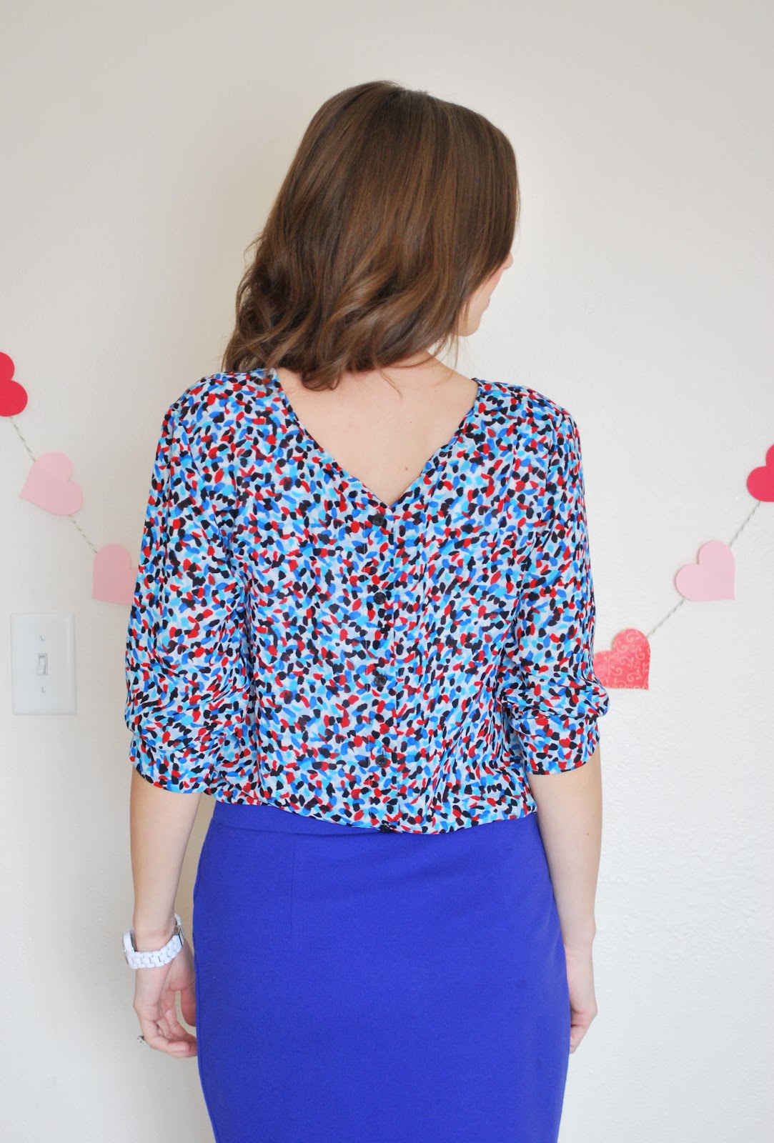 After a few well-place seams, it became a gorgeous new blouse that I used for my Valentine’s Day outfit: