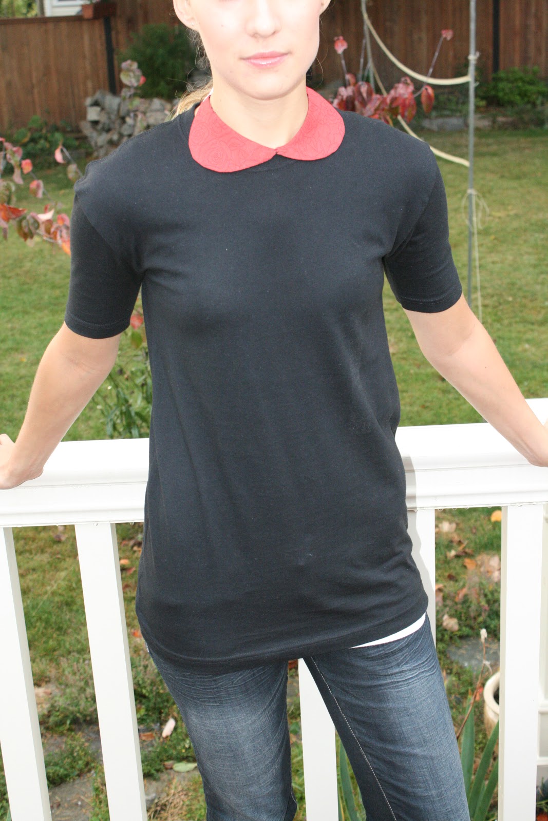Stefanie’s last project was a t-shirt skinnification she made using my tutorial here. She also added a detachable peter pan color to give the simple black tee a pop of color and a little visual interest. Such a fun addition!