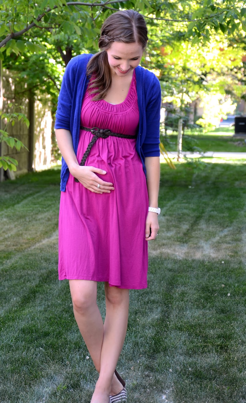 You look great. I love those colors together, I love your hair, and I love the hint of the baby bump.