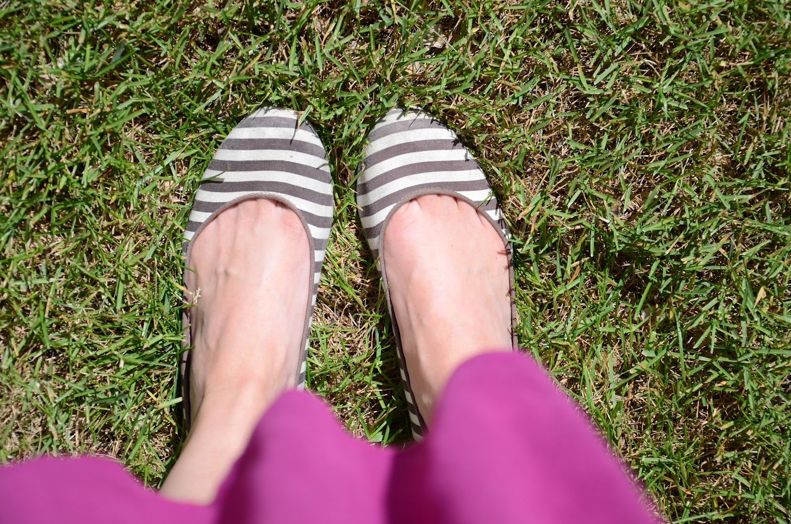 The purple dress is so pretty on you and I LOVE your striped flats! Can't wait to see what projects you come up with 🙂