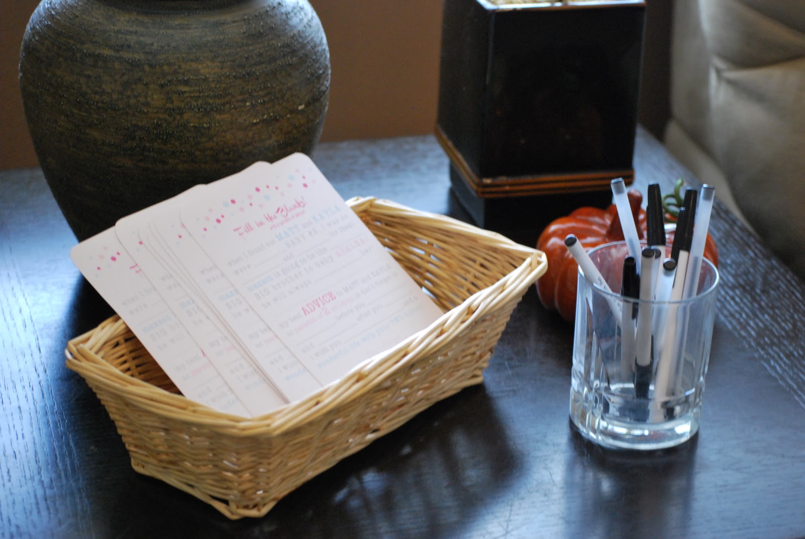 As the guests arrived, they filled out the mad-lib card, giving advice to the soon-to-be mother of two. Most people went with serious or sweet advice, but some of them were hilarious and a bit snarky. Just what we like. Then after everyone had eaten, we played the trivia game — ten questions about the heaviest baby ever born, the woman who had the most children ever, and strange Chinese pregnancy traditions. It was great fun (although no one got more than 4 right…it was a tough quiz!).