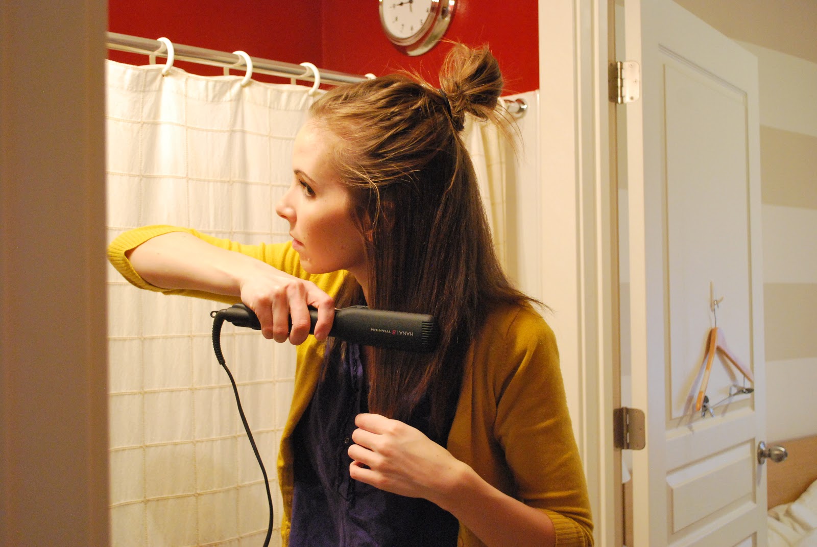 I straightened my hair in two sections (top and bottom)….