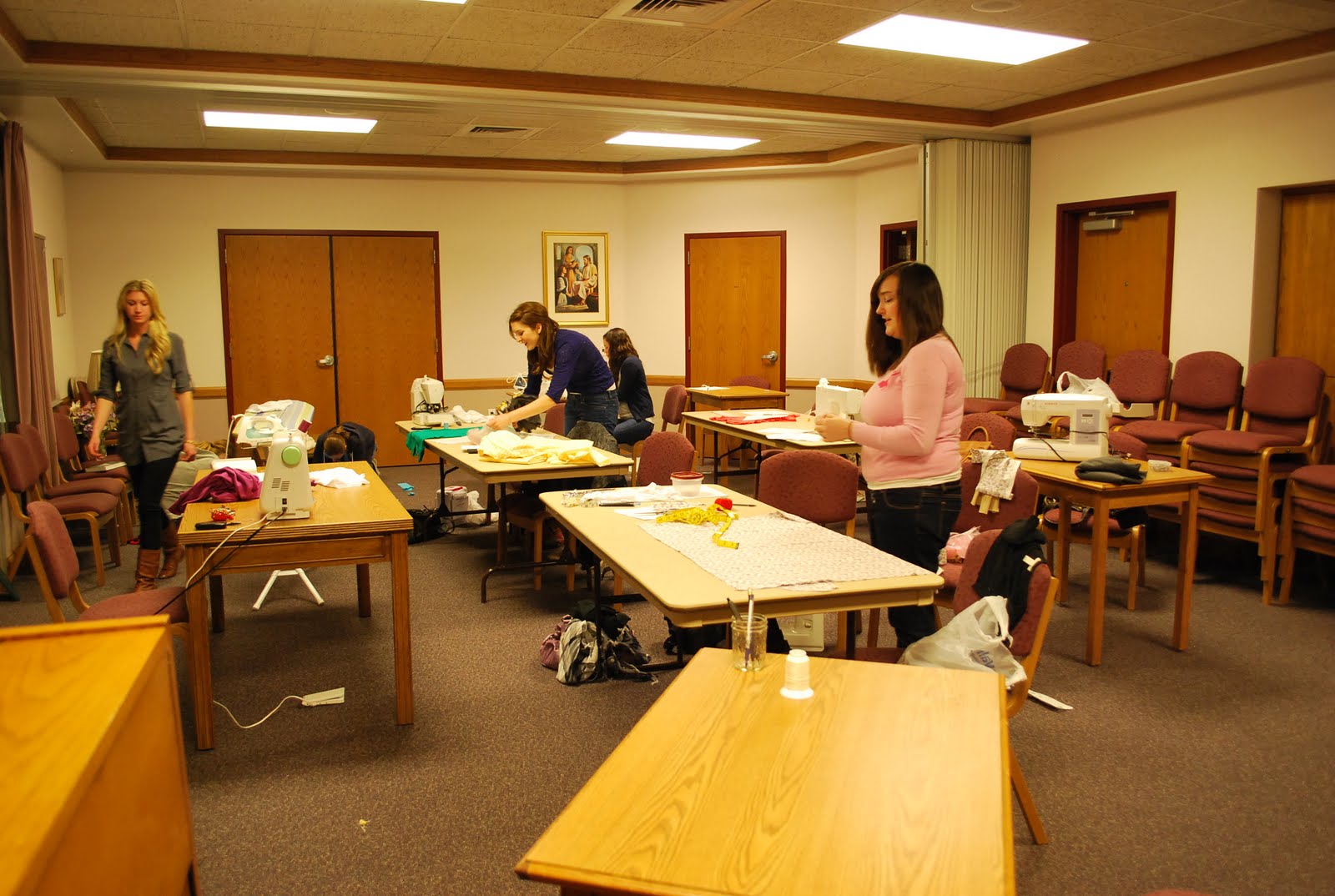 The other evening a group of girls from church got together to do a little sewing group. Leanne, from Elle Apparel, just so happens to go to our church and agreed to teach all of us to make this darling dress. The evening mostly consisted of Leanne demonstrating, and then there was a little time afterward for us to cut out our pieces.