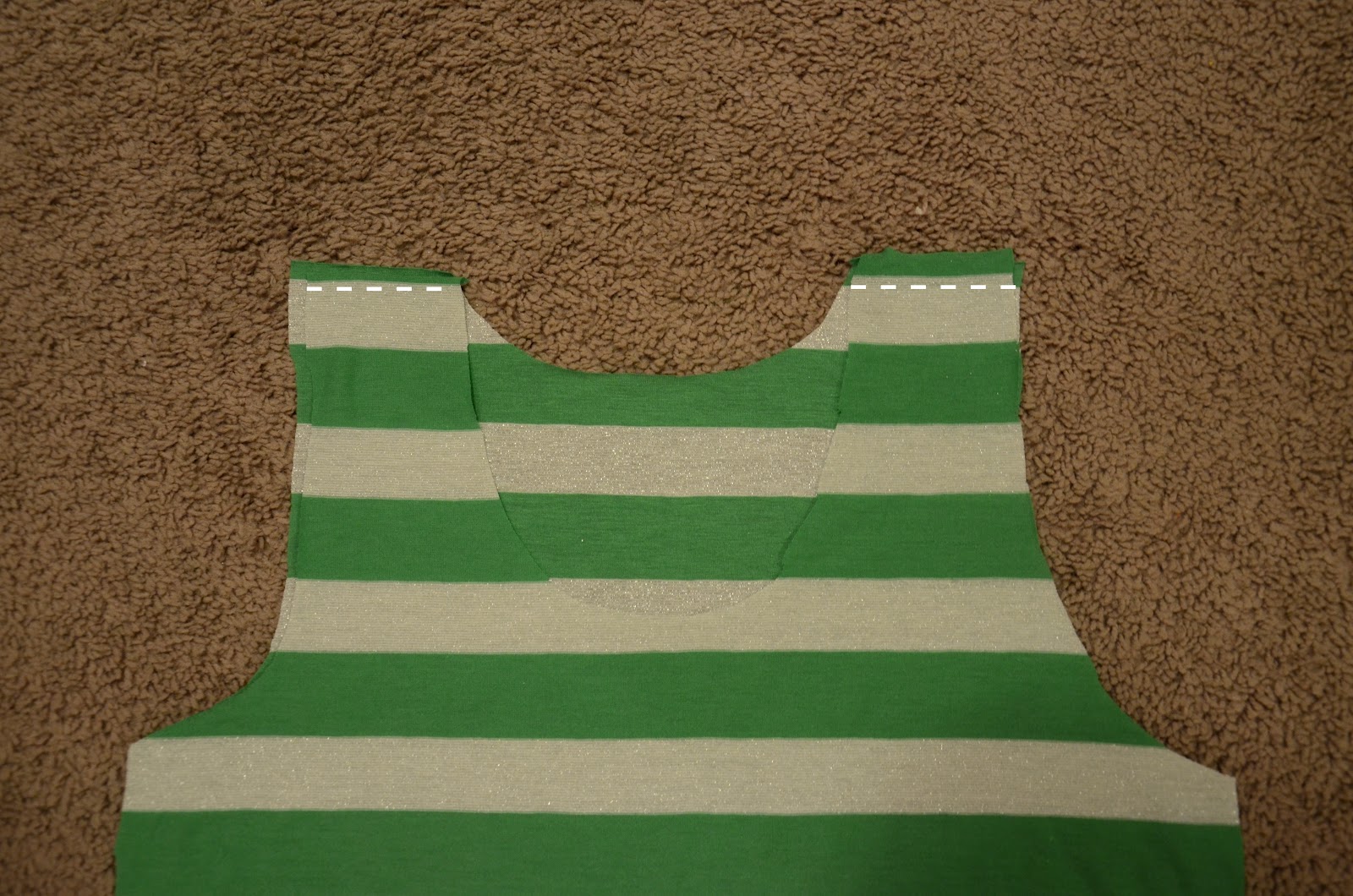 Add a 3/4″ seam allowance as you cut around the tank/shirt.