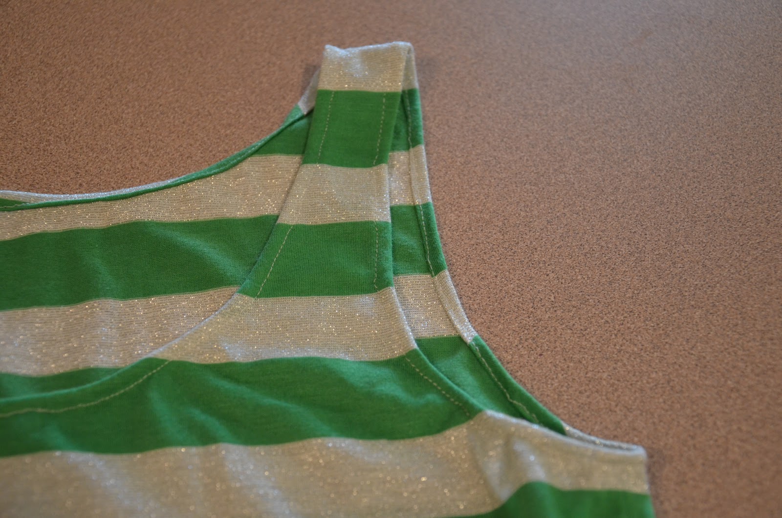 Step 2. Sew up the sides and the shoulders (as seen below in the next two photos). If you’re using stripes like me, make sure you line up the stripes on the sides, and sew the shoulders on the same stripe so they match up on either side.