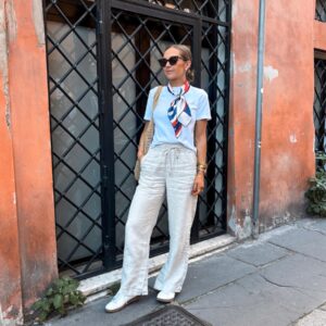 Target blue top and short matching set, reef sandals, jcrew glasses
