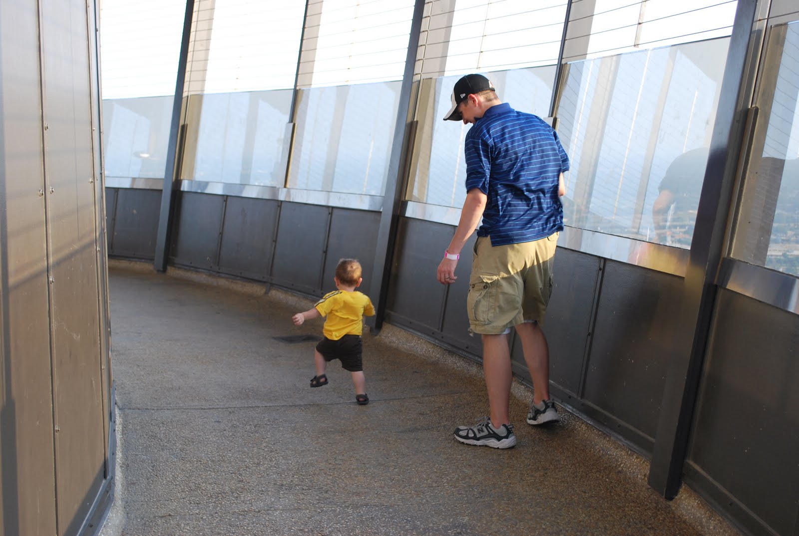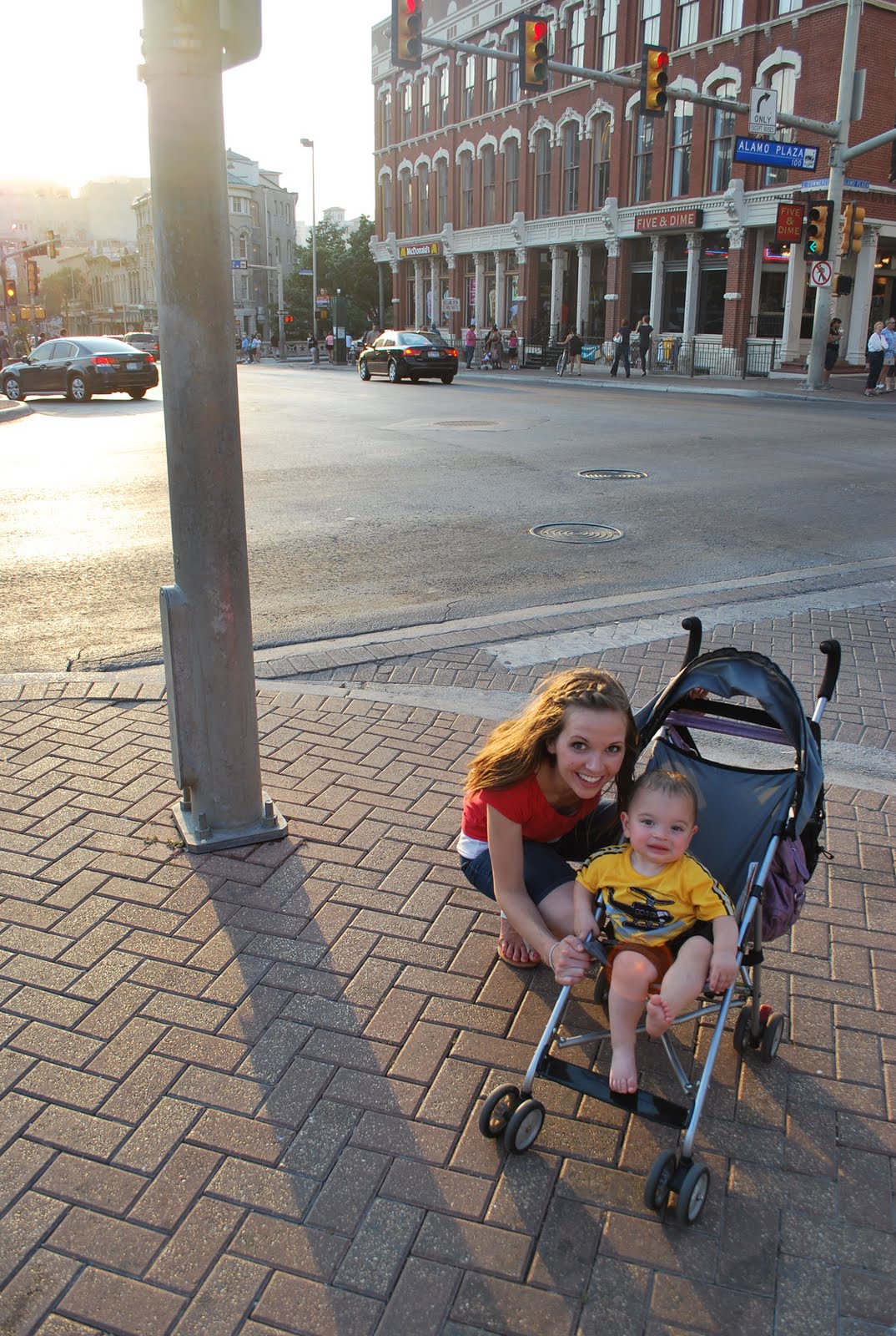 After eating to our hearts content, we were back on the road to San Antonio. Our first stop after checking into our hotel was the famous San Antonio Tower of the Americas. It wasn’t too far from our hotel so we decided to walk there. Despite the fact that Peanut was in his stroller for the whole walk, he was probably the hottest of all of us so he was quick to steal my delicious icee. We took the elevator to the top, and in an effort to curb Peanut’s craziness, we went on the outside deck to let him run around. It was insanely windy up there and we got a good laugh as he tried to run against the wind with little progress. I wouldn’t have been surprised if had lifted off the ground — good thing he’s a solid little dude so his feet stayed firmly planted on the ground.