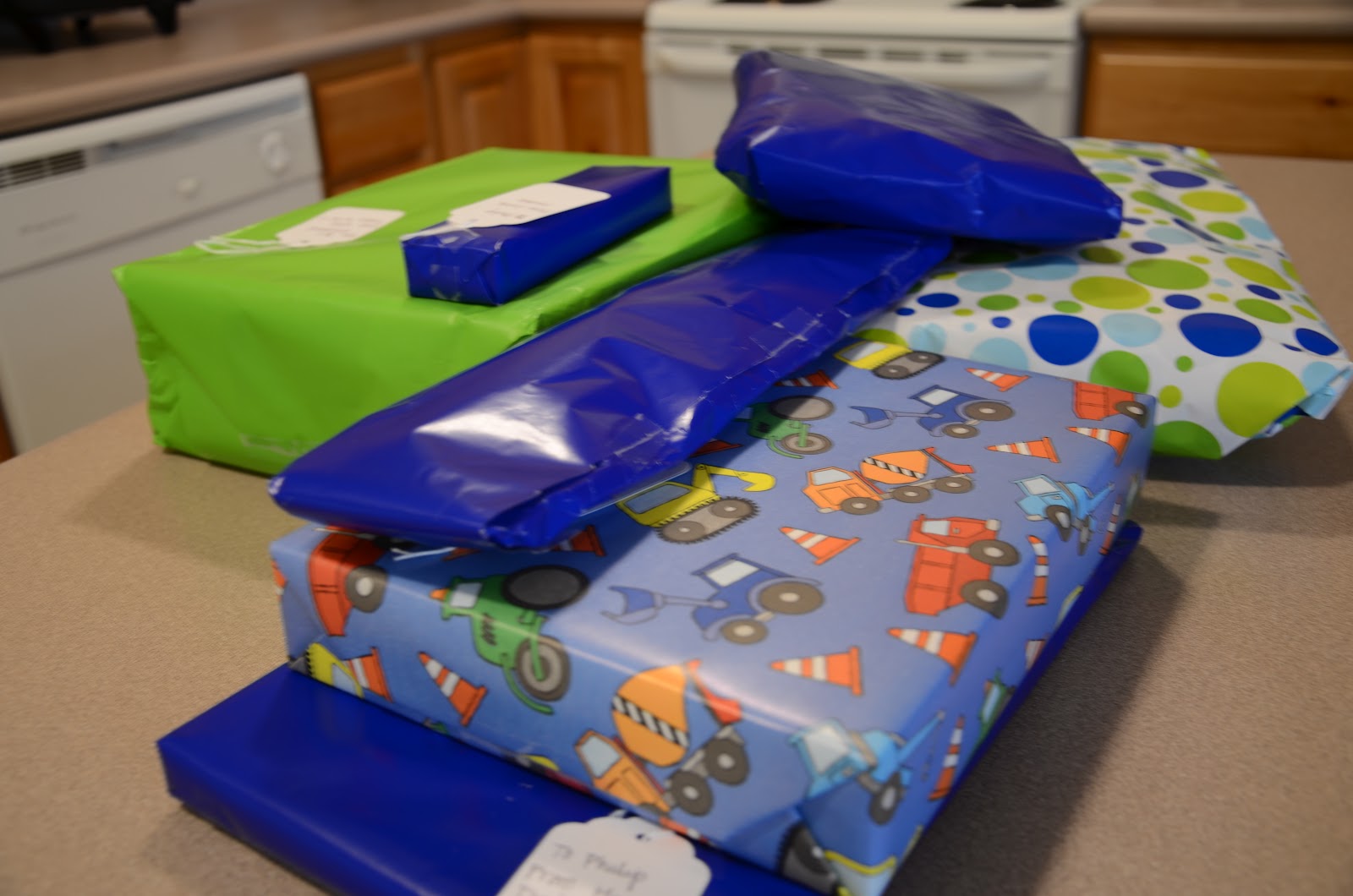 | Can you guess who chose the wrapping paper?? Peanut said, “I think Daddy will REALLY like this one.” I had to oblige. |