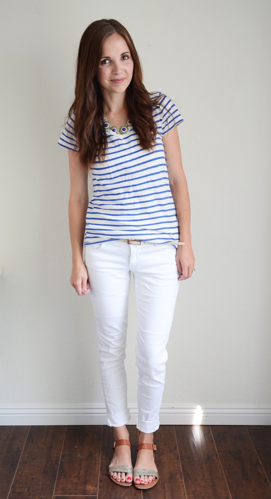 5. White jeans go with everything, and a navy and white striped top goes with everything. A match made in heaven. I cuffed the jeans, added a