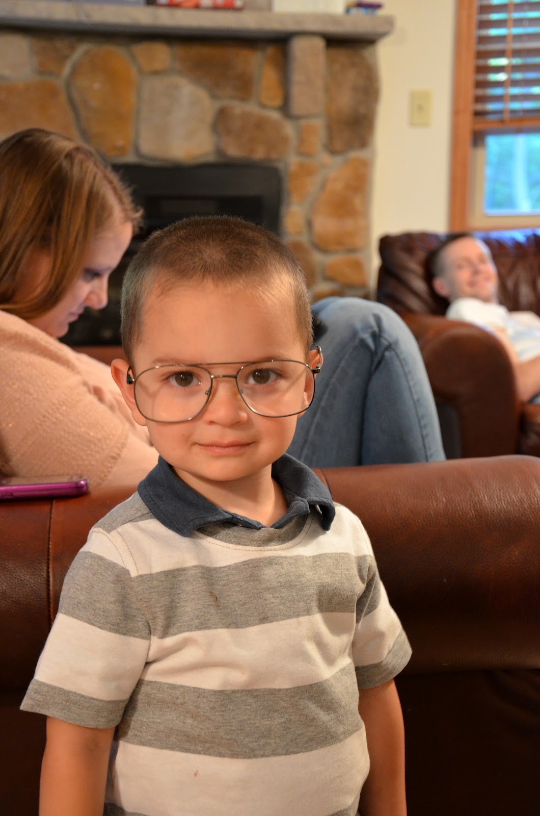 On Monday, our first full day there, we took family pictures (which I’ll be sharing soon!). After they were done and we were just sitting around relaxing at the house, Peanut thought it would be fun to play dress up with Grampy’s glasses. This photo kills me every time.