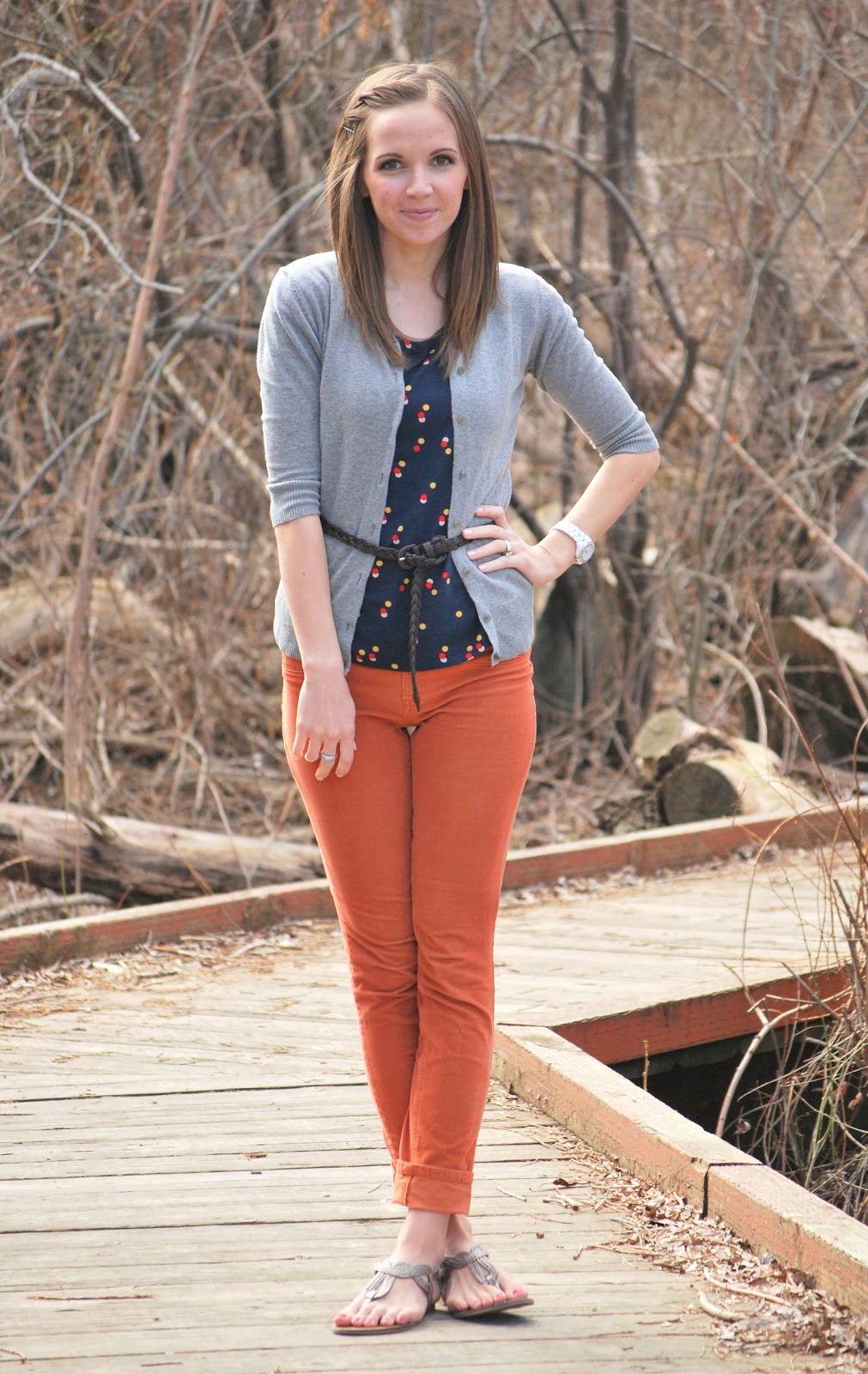 Ha! I wore the shirt yesterday and am posting it next week with my red pants. Sooo glad you did it with your orange courds. You look fantastic!